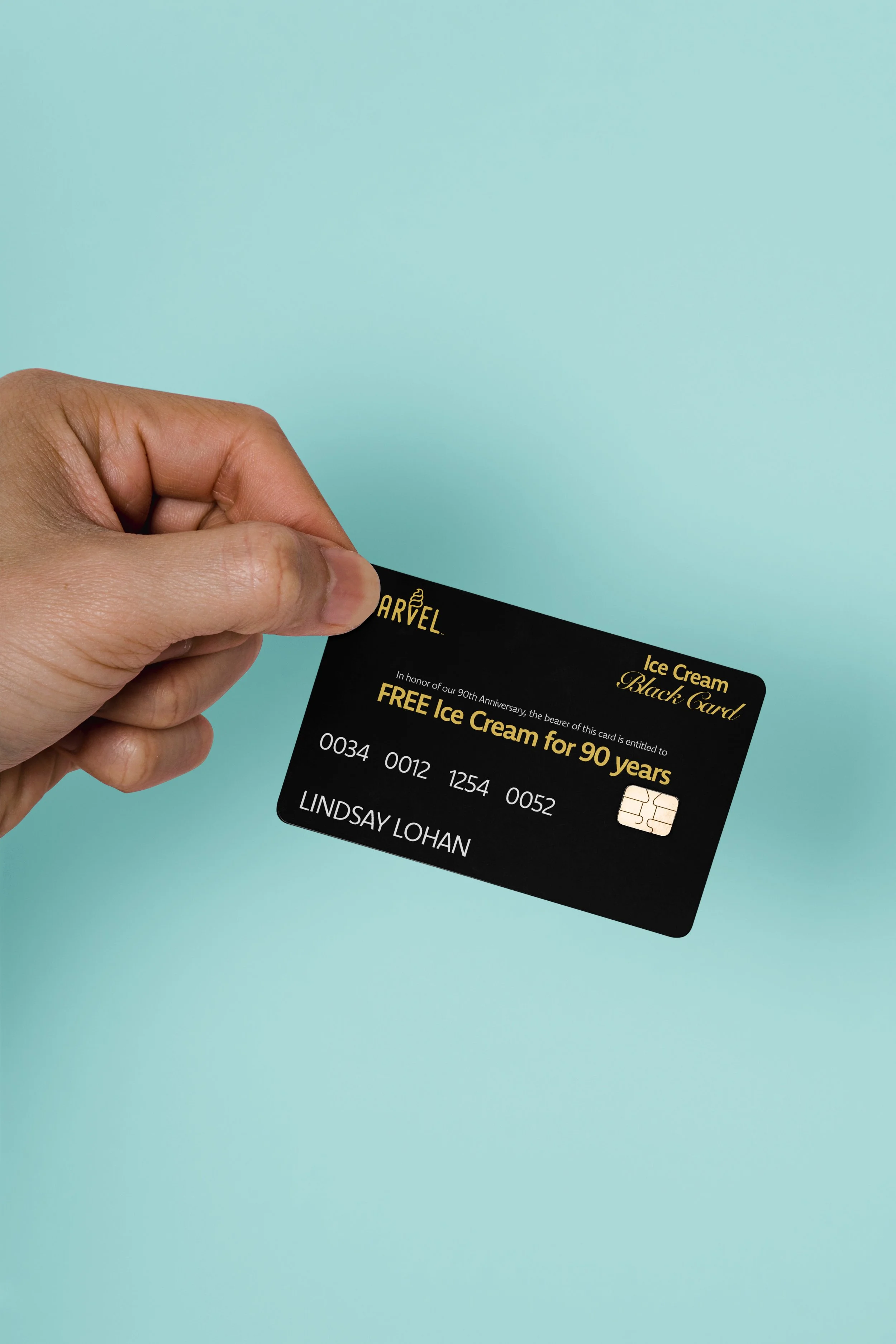 Carvel celebrates their 90th birthday this year, so this time they will give a Lindsay a black card promising free ice cream for 90 years.